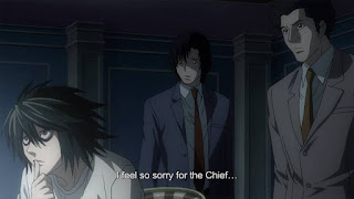 Death Note has excellent pacing and there is nary an episode where the plot isn't moving forward at a brisk pace. Furthermore, the dramatic music and scenes make even the most mundane of events (such as writing a name, or eating a potato chip) exciting. At some point, you will wonder how the story can keep itself going when Kira's methods are undetectable. This is answered when Light likes a challenge, takes risks and deliberately leaves crumbs for L until they clash. Light himself loves to put forward swatches of exposition and Ryuk, as a cheeky bystander yet not completely impartial self, will often reveal something new about the Death Note at the worst possible time to Light. Light will then have to think up of a plan on the fly to accommodate this. The risks escalate ever higher and no party can afford to lose the gamble.